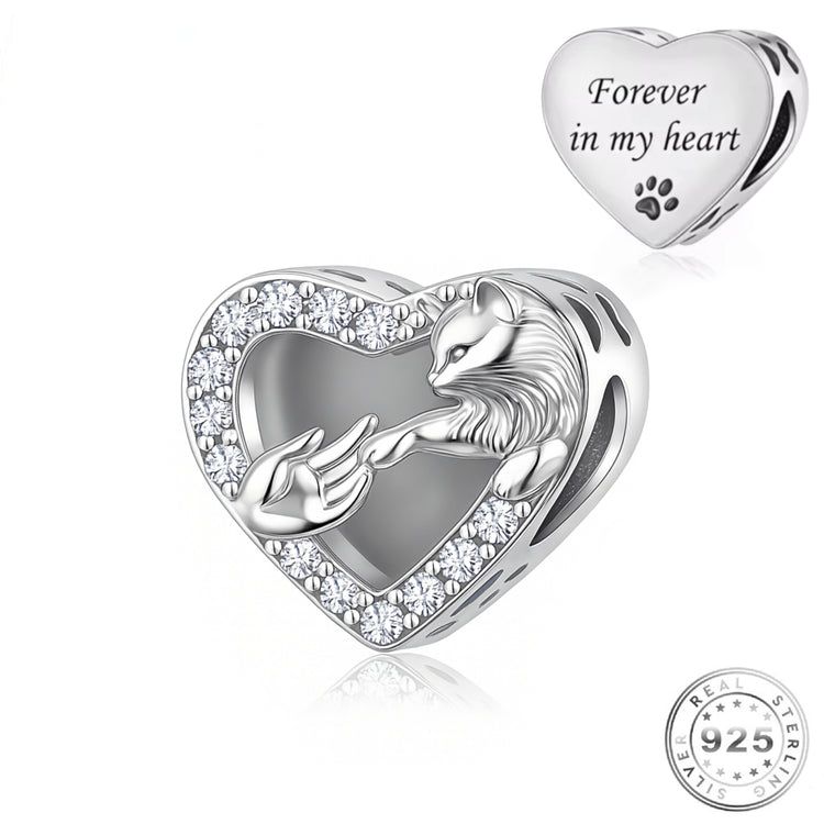 Cat Memorial Charm 925 Sterling Silver - Forever in my heart