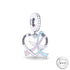 Beautiful heart shaped dangle charm crafted from high quality 925 Sterling Silver featuring a pink and blue crystal embellished ribbon with angel wings entwined through the heart. The charm is inscribed with 'Forever In My Heart'. The pink and blue ribbon symbolises baby loss awareness; a meaningful addition to your charm bracelet to commemorate your angel baby/child.