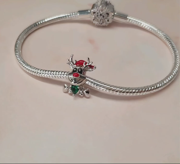 Christmas Reindeer Charm 925 Sterling Silver