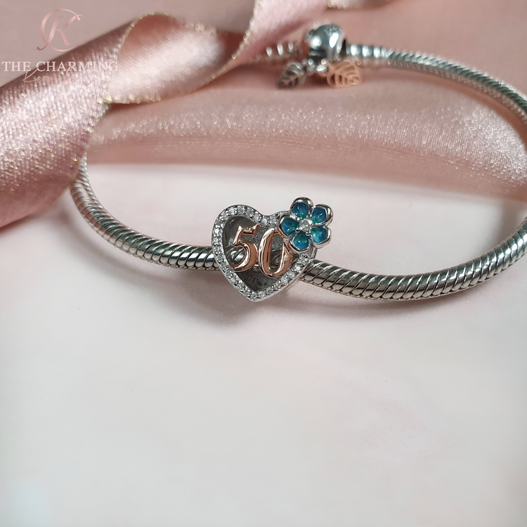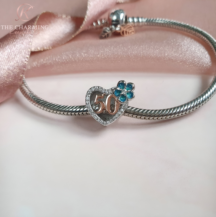 Engraved 50th Birthday Charm 925 Sterling Silver- Personalised fits Pandora - 50 years rose gold