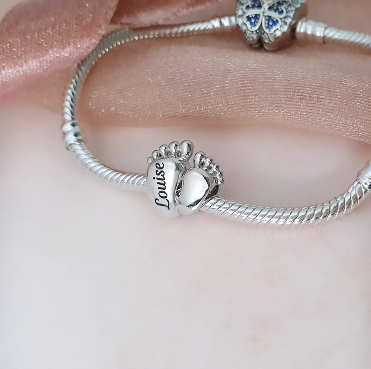 Engraved Baby Footprints / Feet Charm 925 Sterling Silver - Personalised with your text