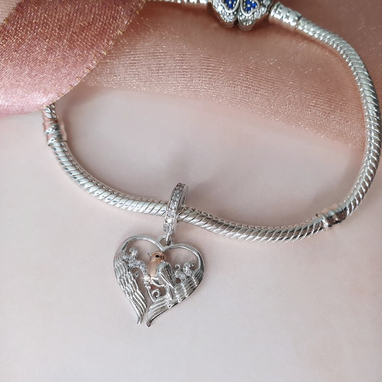 Robin Angel Wings Charm 925 Sterling Silver & Rose Gold - fits pandora - memorial