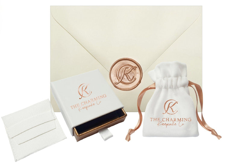 Your charm will be beautifully packaged in our Charming Keepsake Co white and rose gold velvet gift bag. If you would prefer a Charming Keepsake Co white and rose gold gift box please add a message at checkout stating 'Gift Box'.