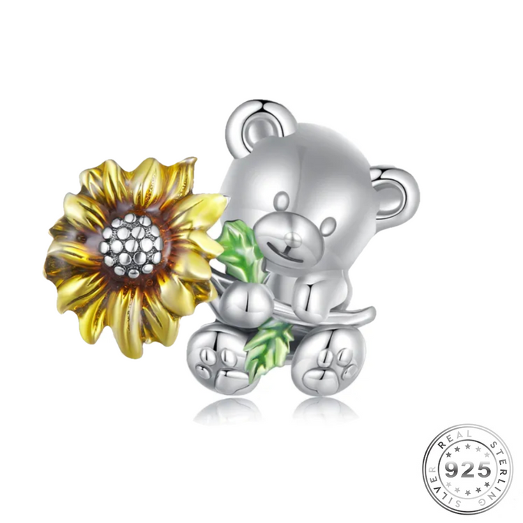 Teddy Bear & Sunflower Charm 925 Sterling Silver