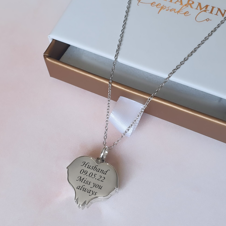 Engravable Blue Angel Wings Ashes Urn Necklace 925 Sterling Silver - Personalised