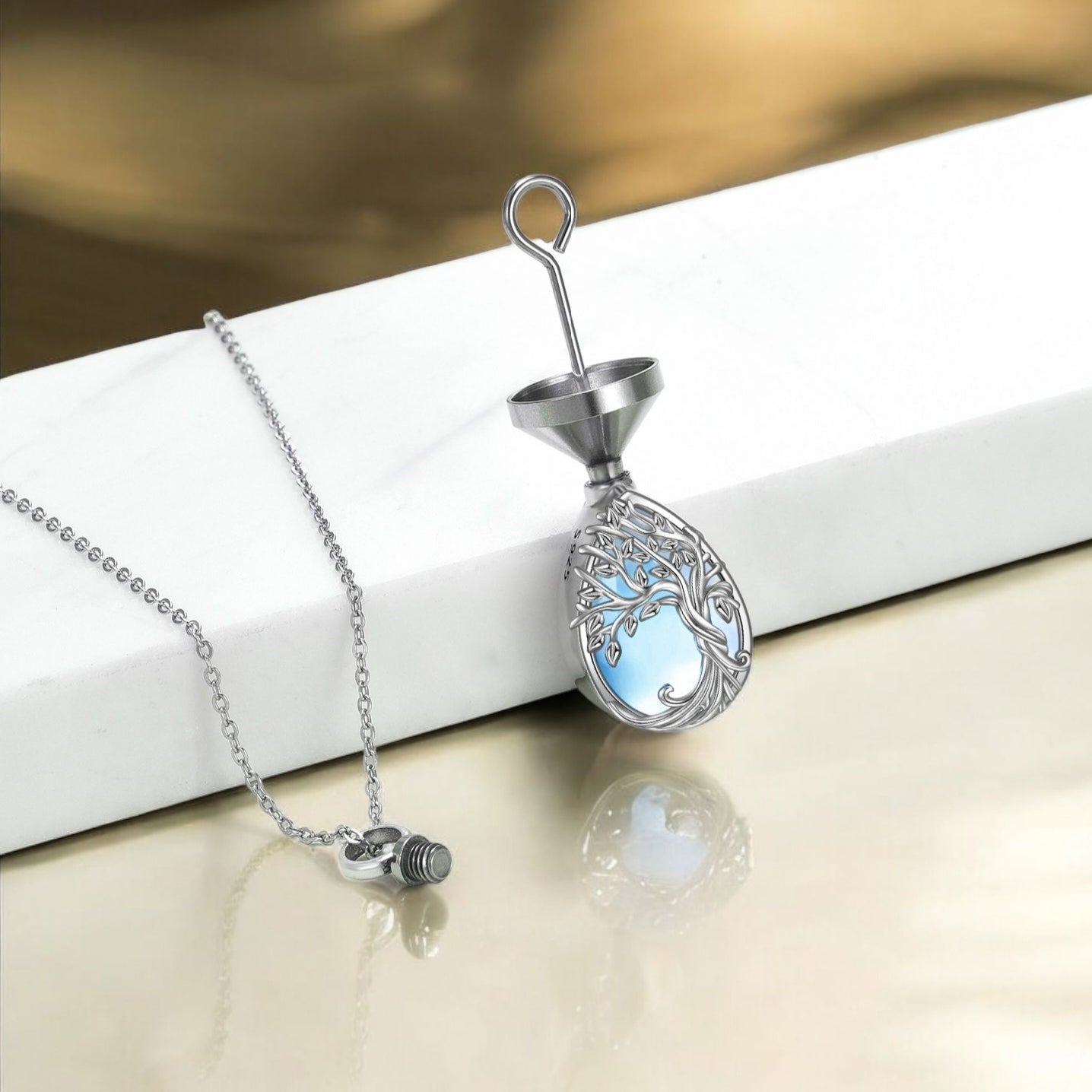 Family Tree Ashes Urn Necklace 925 Sterling Silver and Moonstone