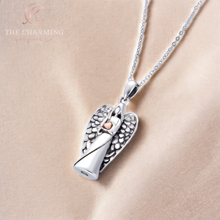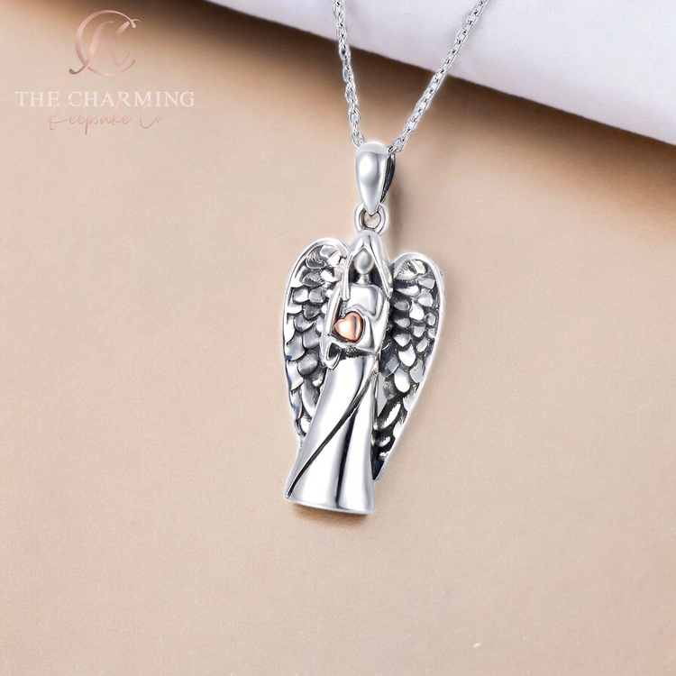 Guardian Angel Cremation Ashes Urn Necklace 925 Sterling Silver & Rose Gold