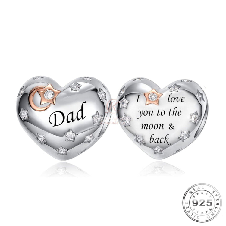 Papa-Herz-Charm aus 925er Sterlingsilber – „I Love You to the Moon & Back“.