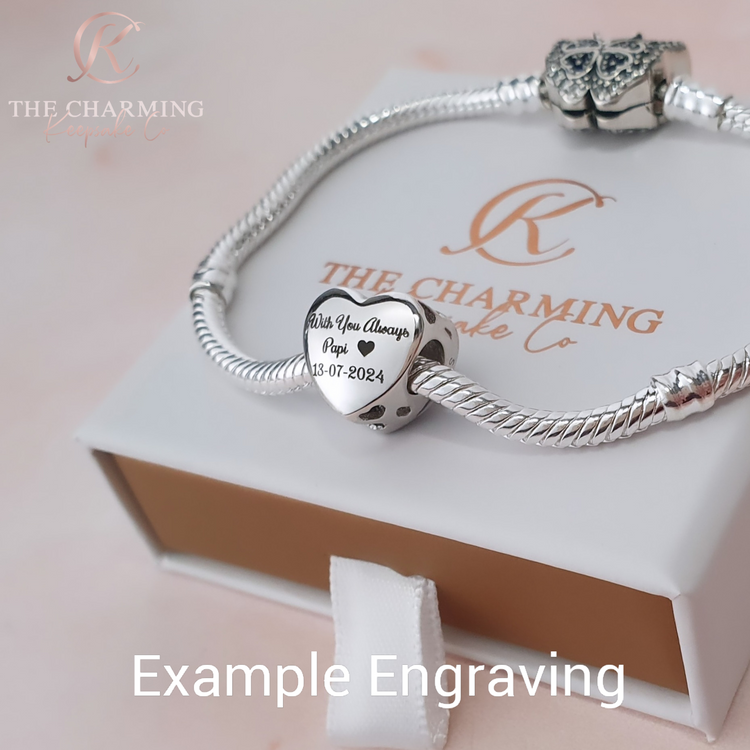 Wir gravieren Ihren Wunschtext auf die Rückseite des Charms. Ihr eingravierter Text wird in Kleinbuchstaben mit einem Großbuchstaben am Anfang von Namen und Nachrichten vervollständigt. Die Initialen werden in Großbuchstaben geschrieben.