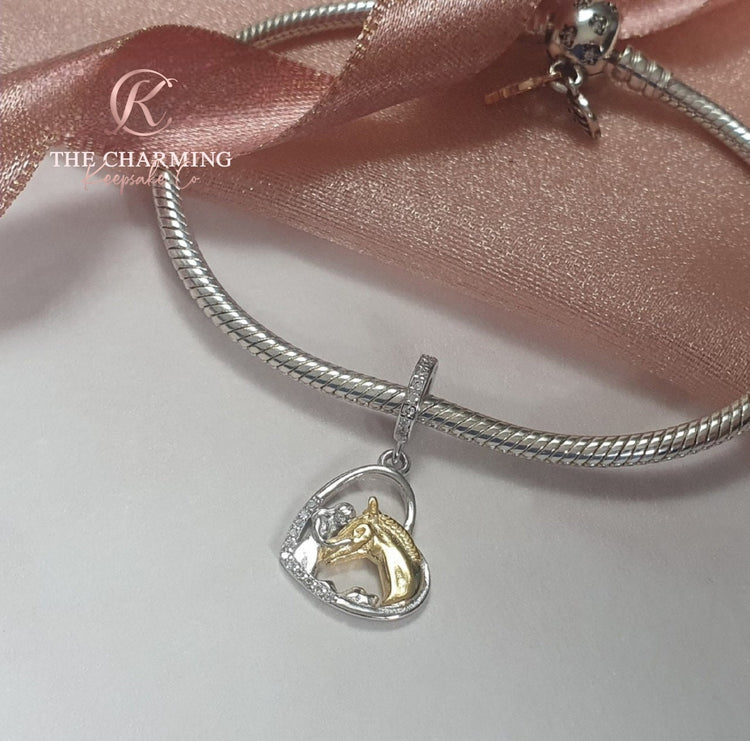 Horse Charm 925 Sterling Silver and Rose Gold fits pandora bracelets