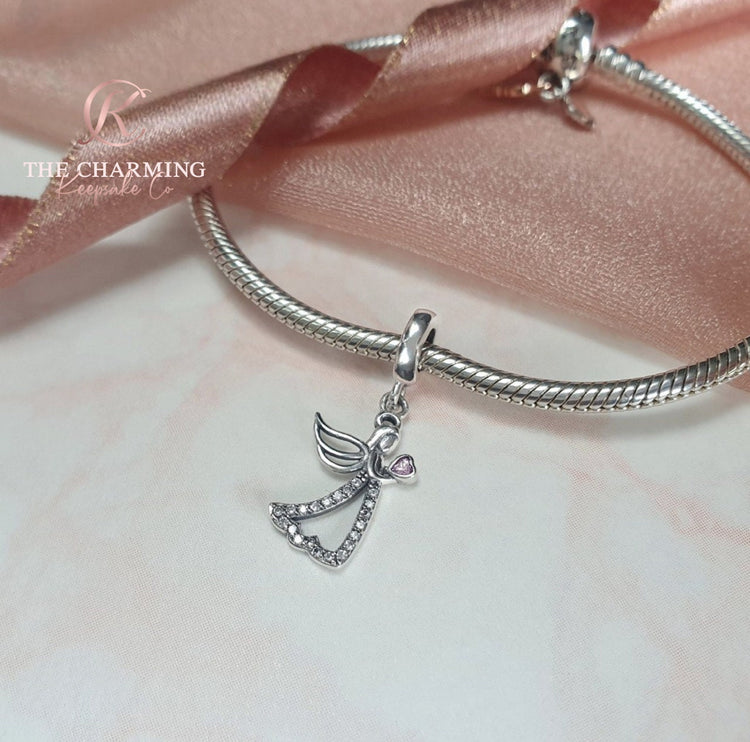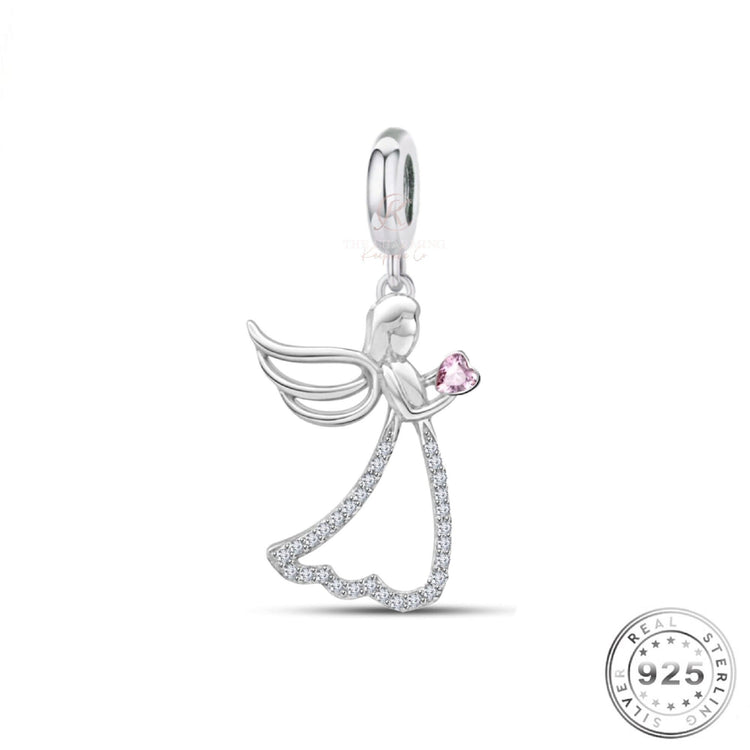 Wunderschöner und hochwertiger herzförmiger Schutzengel-Anhänger aus 925er Sterlingsilber, verziert mit funkelnden Zirkonia-Kristallen und einem Herz in der Hand; eine sinnvolle Ergänzung für Ihr Bettelarmband oder Geschenk für einen besonderen Menschen.