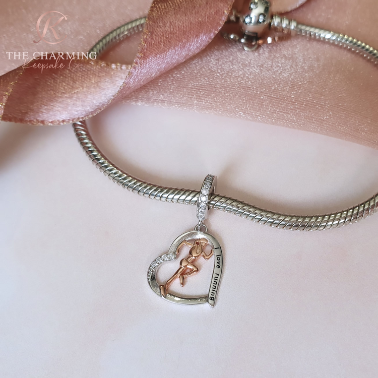Love Running Charm Genuine 925 Sterling Silver & Rose Gold ( fits pandora )