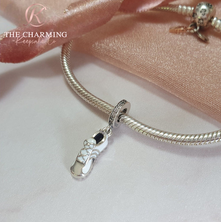Hochwertiger Charm aus 925er Sterlingsilber mit einem glitzernden, klaren Zirkonia-Kristallbügel und einem Trainer-Anhänger, verziert mit weißer Emaille. Auf der Unterseite des Trainers befindet sich die Aufschrift „Born to run“; die perfekte Ergänzung für Ihr Bettelarmband oder Geschenk für jemanden, der das Laufen liebt!
