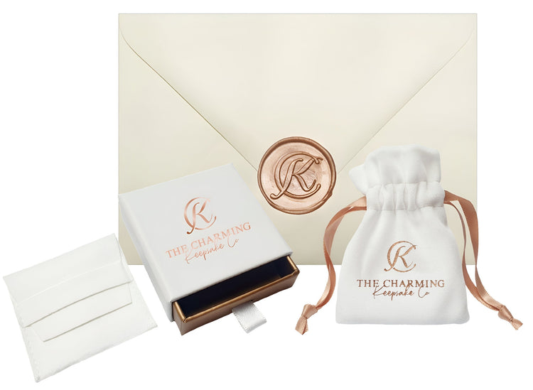 Ihr Anhänger wird wunderschön in unserem weißen und roségoldenen Samt-Geschenkbeutel von Charming Keepsake Co verpackt. Wenn Sie eine Geschenkbox aus Weiß- und Roségold von Charming Keepsake Co bevorzugen, fügen Sie bitte an der Kasse die Nachricht „Geschenkbox“ hinzu.