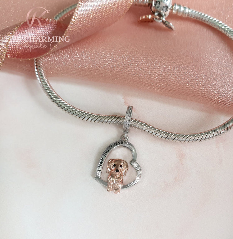 sausage Dog Charm 925 Sterling Silver & Rose Gold fits pandora bracelets