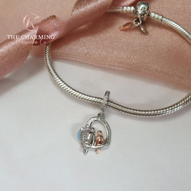 „Brother & Sister Forever Friends“-Charm aus 925er Sterlingsilber