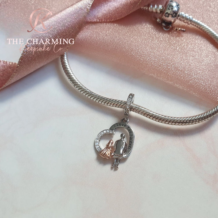 Love You Forever Dad (or Grandad) & Daughter Charm 925 Sterling Silver  fits pandora