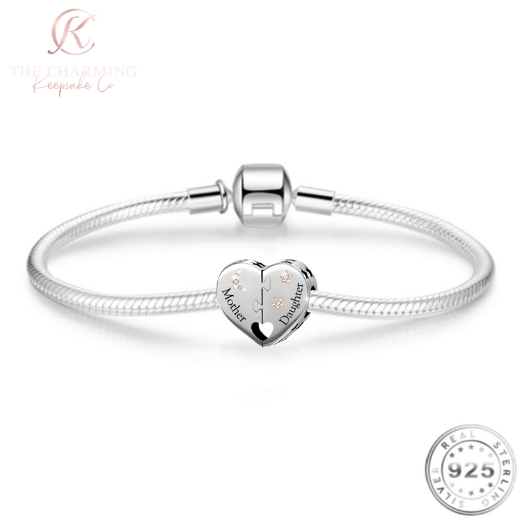 Mother & Daughter Heart Charm 925 Sterling Silver - Love You To The Moon fits Pandora