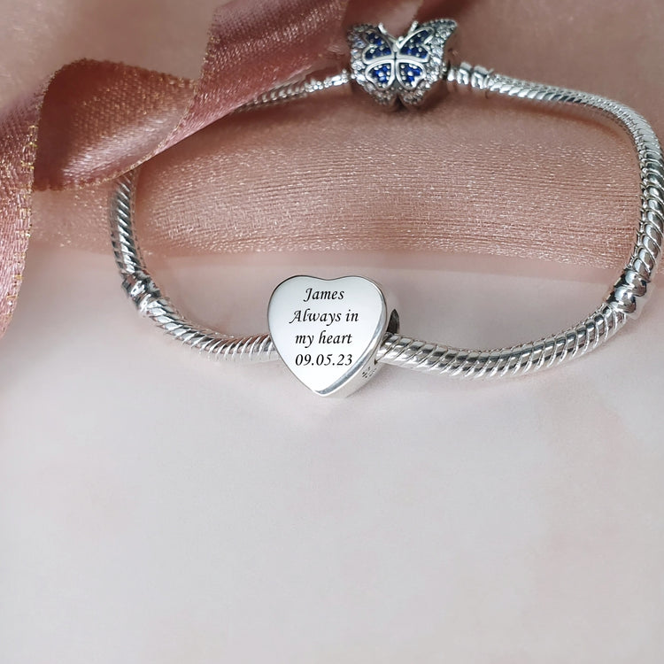 Engraved Ashes & Resin Heart Charm 925 Sterling Silver fits Pndora Ashes & Resin Heart Charm 925 Sterling Silver compatible with Pandora Bracelets