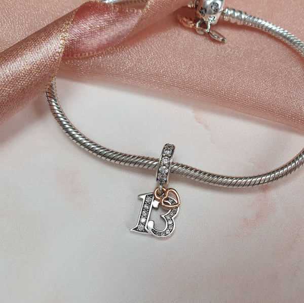 13th Birthday Charm 925 Sterling Silver and Rose Gold